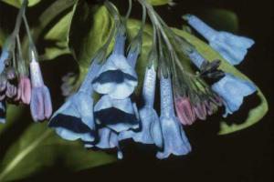 Virginia bluebells is an erect, single- to few-stemmed, perennial, herbaceous plant growing 12 to 30 inches tall. Its smallish, blue, flowers are pink to light purplish-pink in the bud, have both male and female parts, and are grouped into showy, compact, drooping clusters. They are insect-pollinated.